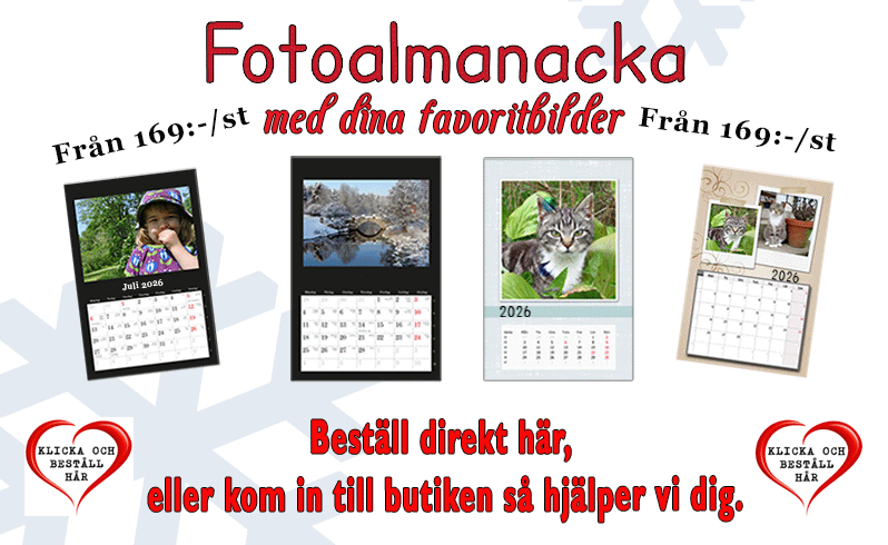 OBS! På lördagar kan vi inte framställa presenter som: T-shirt, musmattor, muggar mm på 1timme samt förstoringar större än 30x45. |