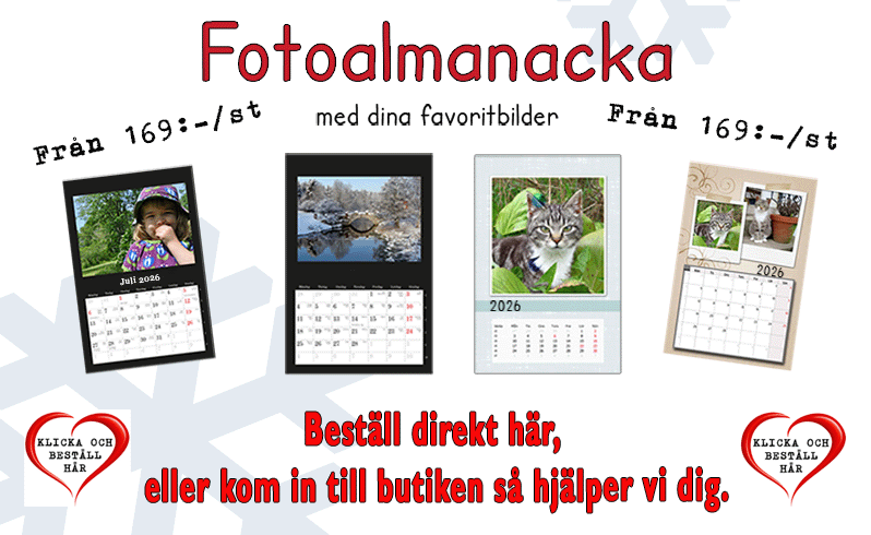 OBS! På lördagar kan vi inte framställa presenter som: T-shirt, musmattor, muggar mm på 1timme samt förstoringar större än 30x45. |